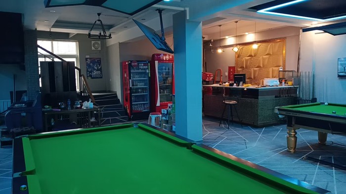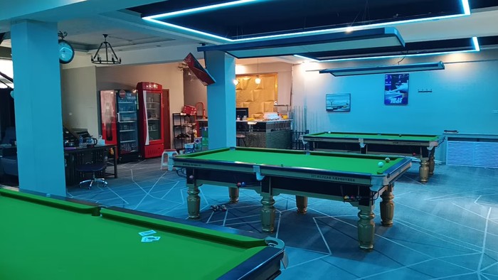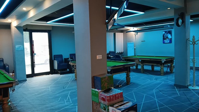 位于市内,营业中,面积300平,四个金腿球桌,四个棋牌室。